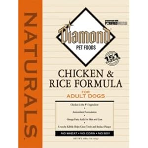 The 26% protein and 16% fat formula will provide your dog with the nutrients necessary for optimal health and an active life. Diamond Naturals Chicken ; Rice Adult Formula Dry Dog Food contains guaranteed levels of vitamin E and selenium to ensure that your dog is receiving optimum antioxidant nutrition, and crunchy kibble helps clean teeth and reduce plaque.