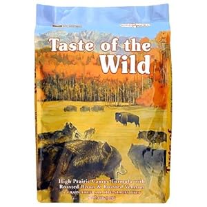 Taste of the Wild High Prairie Canine Formula Roasted Bison ; Venison Dry Dog Food is a grain-free formula with sweet potatoes and peas provides highly digestible energy for your active dog. Made with real roasted meats, this formula offers a taste sensation like no other. Supplemented with fruits and vegetables, this hearty formula delivers natural antioxidants to protect your friend's body from the damage of everyday living, supporting a healthy immune system and overall good health. Your dog craves a taste of the wild. Go ahead and give him one.
